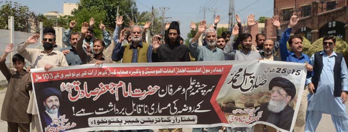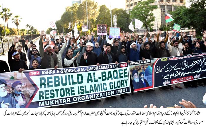 | ISLAMABAD, April 13: Mukhtar Organization held protest in Islamabad; participants demanded the reconstruction of Jannat Al baqi | ||