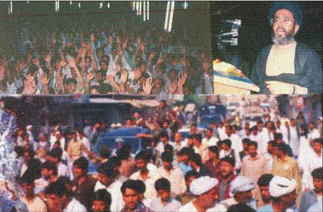 Quaid e Millet e Jaffariya Agha Syed Hamid Ali Shah Mousavi being welcomed during his visit to Dera Ghazi Khan (Inset picture: addressing the crowd)