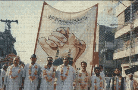 Pictured during Procession of Milad un Nabi (SAWW): Delegates of committee responsible for promoting week of unity and brotherhood