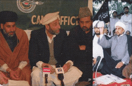Right: President of TNFJ-Islamabad Allama Basharat Hussain Imami addresses a press conference protesting setting a light the Shrine of Sakhi Mahmood (ra); Left: TNFJ Additional Secretary General Shujahat Ali Bukhari addresses a press conference protesting alleged development plan to demolish the birth place of the Holy Prophet (PBUH&HHP) |