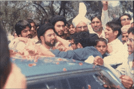 Quaid e Milat e Jaffariya is being greeted on his arrival at Hafazabad