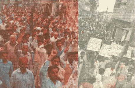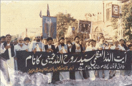 A view of Hussaini Muhaz in 1985. Participants are Chanting “Jan dean gey Fiqah Lain gey”(“We are Ready to give up life for faith”)