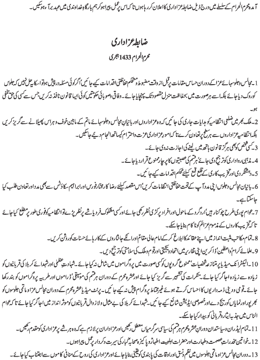 Address of Quaid e Millat e Jafariya Agha Syed Hamid Ali Shah Moosavi During press conference in connection with Muharram ul Harram 1434 AH |