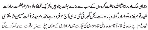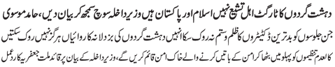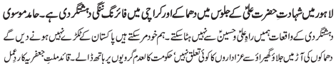 RAWALPINDI, September 2: The Quaid-i-Millat Jafariya Agha Syed Hamid Ali Shah Moosavi while strongly condemning the blasts at Imambargah Karbala Gamay Shah and Bhati Chowk in Lahore said that terrorism and blasts could not divert us from following Ali (A.S.) and Hussain (A.S.).
