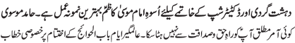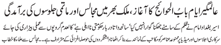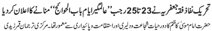 RAWALPINDI, July 4: The Quaid-i-Millat-i-Jafariya Agha Syed Hamid Ali Shah Moosavi has announced to observe Universal Ayyam Babul Hawaij from 23-25 Rajab-ul-Murajjab in connection with the Shahadat of Hazrat Imam Musa Kazim (A.S.).