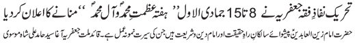 Special Message of the Quaid e Millat e Jafariya Agha Syed Hamid Ali Shah Moosavi in connection with “Hafta e Azmat e Muhammad O Aal e Muhammad (pbut)” |