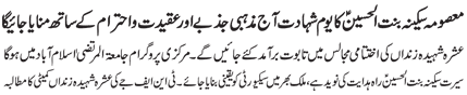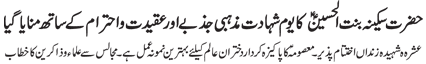 special Message of Quaid e Millat e Jaffariya Agha Syed Hamid Ali shah mousavi in connection with martyrdom of Hazrat Sakina bintul Hussain (sa) |