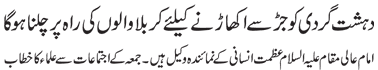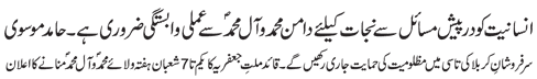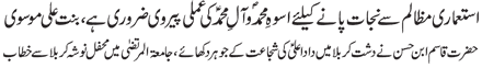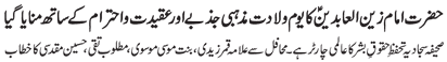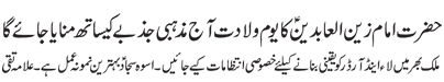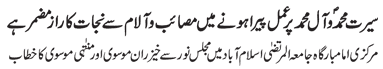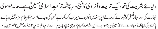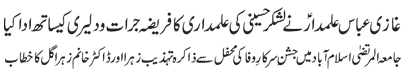 RAWALPINDI, July 3: Practical attachment with the Daman of Muhammad (pbuh & hhp) and Aal e Muhammad (pbuh) is necessary so as to get rid of problems confronted by the humanity – Quaid e Millat Jafariya announcing to observe Hafta Wila e Muhammad O Aal e Muhammad from Sha’aban Al-Muazzam 1-7 |