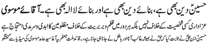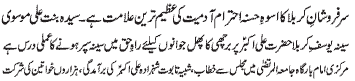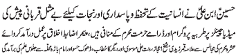 and respect throughout the country; Matchless sacrifice of Imam Hussain (A.S.)