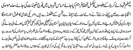 RAWALPINDI, January 3: The Chehlum (fortieth) of the martyrs of Karbala will be commemorated with great religious respect and dedication; the main Central mourning procession of Rawalpindi will be brought out from Imam Bargah Ashiq Hussain Teli Muhalla, Imam Bargah Hifazat Ali Shah and Imam Bargah Col. Maqbool; the electronic and Print media must provide full coverage to the chehlum processions