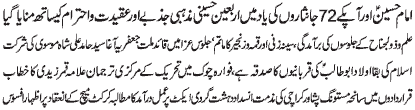 RAWALPINDI, January 4: The Arbaeen e Hussaini was observed with great religious zeal and respect to pay homage to the sacrifices rendered by Imam Hussain (PBUH) and his 72 brave companions