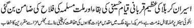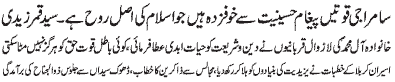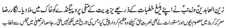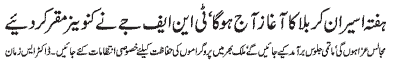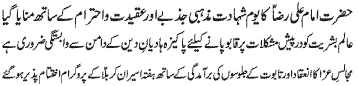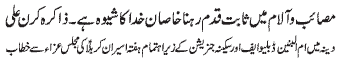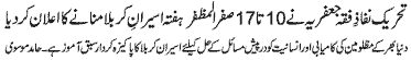RAWALPINDI, January 5: Hafta e Aseeran e Karbala starting today; Conveners nominated by TNFJ; Majalis e Aza and Matamdari processions will be held. Special security arrangements for the programs of Hafta e Aseeran e Karbala must be made - Dr. S. Zaman |