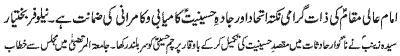 Special Message of the Quaid e Millat Jafariya Agha Syed Hamid Ali Shah Moosavi in connection with Hafta e Azmat e Mustafa O Mujtaba (PBUT) which is being observed between 23rd to 29th Safar al Muzaffar 1433 AH |