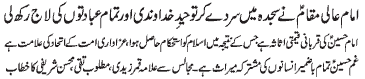 the need of the hour - Address of Allama Nasir, Qamar Zaidi and Sheikh Ijaz