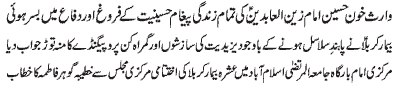 Abideen (PBUH) dedicated his life for the protection and propagation