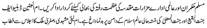 | ISLAMABAD, August 16: On the call of the TNFJ for the restoration of the former glory of holy places of Islam, the universal Day of Destruction will be observed today | ||||