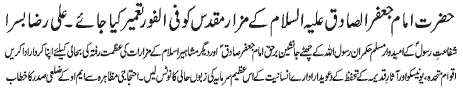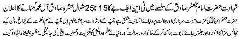 Sadiq e Aal e Mohammad from 15th to 25th Shawal to