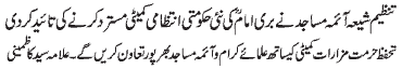 Tehreek Nafaz e Fiqh e Jafariya has announced the observation of Ashra e