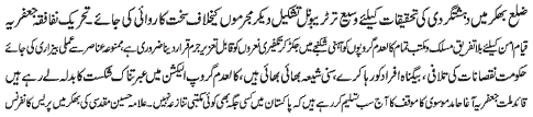 in Bhakhar; innocent people should be freed; all Shia and Sunni are living side