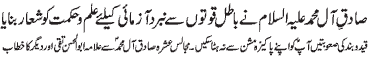 colonialism the path set by the Holy progeny of the Holy Prophet (PBUT) must be