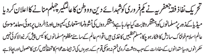 ISLAMABAD, January 28: TNFJ has announced the observation of the universal Chehlum of all those sons of the religion and the motherland who kissed martyrdom during days of grief of Imam Hussain on 1st February; Muslims are being declared terrorists while using the power of media - Hamid Moosavi