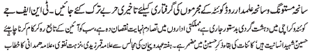 RAWALPINDI, January 17: The delaying tactics to catch the criminals behind the incidents of Mastong and Alamdar Road, Quetta should be stopped; Imam Hussain (PBUH) is the ultimate martyr, the survival of the universe lies in the commemoration of Imam Hussain (PBUH) - addresses of Qamar Zaidi, Nuzhat Naqvi, Mohsin Hamdani and others to the mourning assemblies in connection with Hafta e Ehad O Peyman