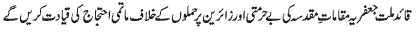 ISLAMABAD, January 19: The Quaid e Millat e Jafariya Agha Syed Hamid Ali Shah Moosavi will lead Matami protest in Islamabad against the desecration of the holy sites of Islam and attack on the pilgrims’ caravan