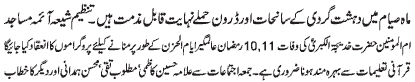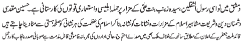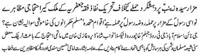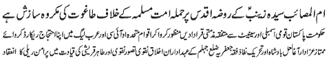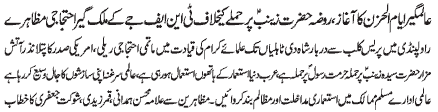 | ISLAMABAD, July 22: TNFJ staged countrywide protest against the rocket attack on the Holy Shrine of Hazrat Zainab (PBUH) in Syria | |||