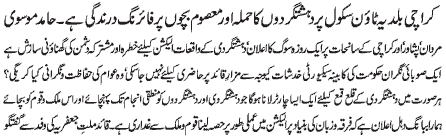 ISLAMABAD, March 31: Terrorist’s attack on the school in Karachi and shooting school children is a heinous crime – Hamid Moosavi