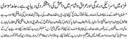ISLAMABAD, August 8: The American favours on Israel's war crime against Palestinians is a cause of concern for the Islamic world - Shuja'at Bukhari |