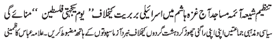 RAWALPINDI, August 1: Israel is playing with the blood of Palestinians in Gaza - TNFJ |