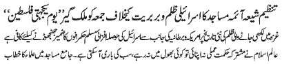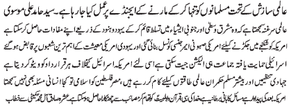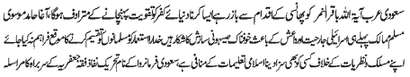 | ISLAMABAD, August 6: The preface of the greater Israel is being aided by the Muslim rulers destroying the Holy places of Islam | |||