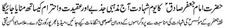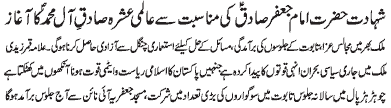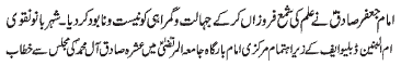 ISLAMABAD, August 17: Imam Jafar al Sadiq (PBUH) lit the candle of knowledge and wisdom is the worst era of dictatorship |