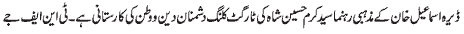 D I KHAN, August 15: The target killing of the religious leader Syed Karam Hussain Shah is an act of the enemy of the religion and the country - TNFJ |