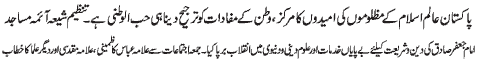 ISLAMABAD, August 11: In order to rule the whole world, the evil agenda has been implemented - Allama Sadiqi |