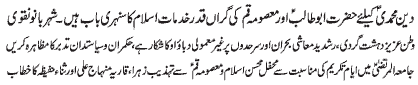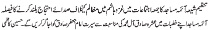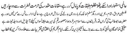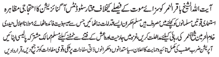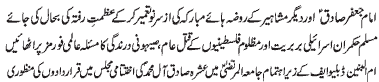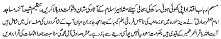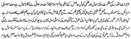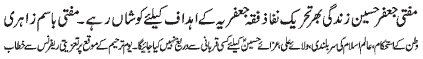 | ISLAMABAD, August 31: Mufti Jafar Hussain spent all his energies for the objectives of the Tehreek Nafaz e Fiqh e Jafariya | |||