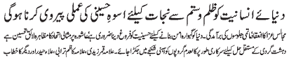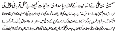RAWALPINDI, November 7: The world of humanity will have to adopt the pious character of Hussain (PBUH) to get freedom from oppression |