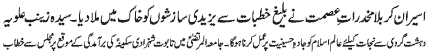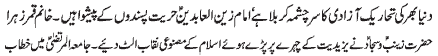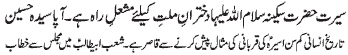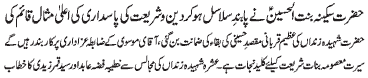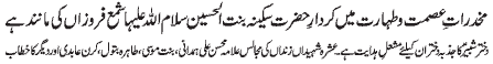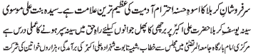 ISLAMABAD, November 23: The pious character of Hazrat Sakina (PBUH) amongst the pious ladies of Ahle Bait (PBUT) is unique |