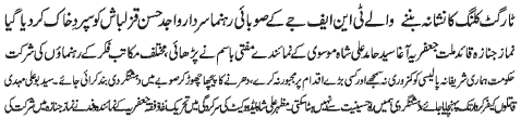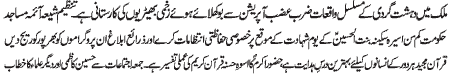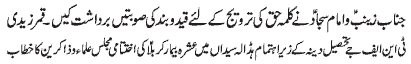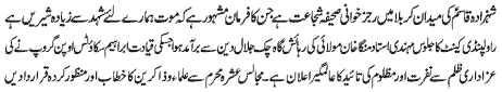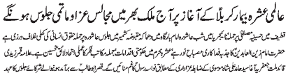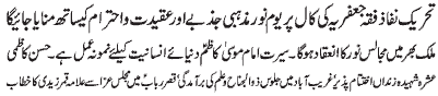 ISLAMABAD, November 21: TNFJ announced the observation of “Ashra Shaheeda-e-Zindaan” from 27 Muharram to 6 Safar-ul-Muzaffar |