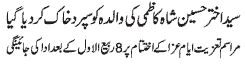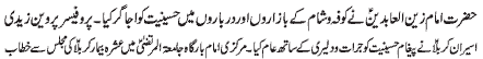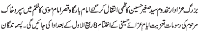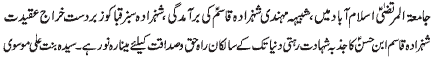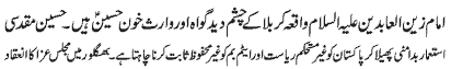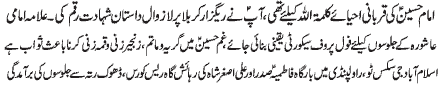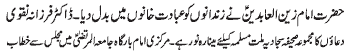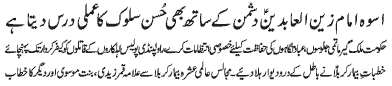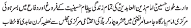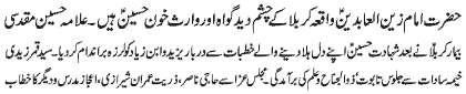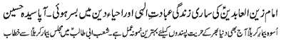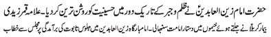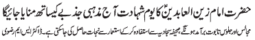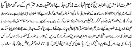 ISLAMABAD, November 20: The Youm-e-Shahadat of Hazrat Zainul Abideen (A.S.) was observed throughout the country with religious spirit, devotion and respect |