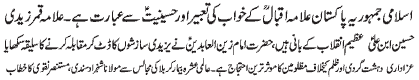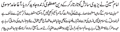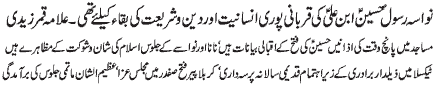 ISLAMABAD, November 11: Imam Hussain (PBUH) is the founder of the great revolution - Qamar Zaidi |