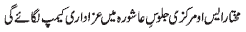 RAWALPINDI, November 9: Today Aalmi Ashrae Beemare Karbala begins, Majalis and processions will be held throughout the country |