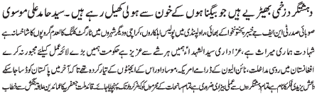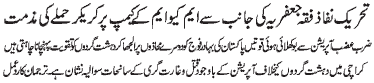 ISLAMABAD, November 22: TNFJ condemned cracker attack on the MQM camp in Karachi |