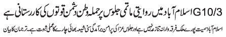 ISLAMABAD, November 15: The attack on the Matami procession in G10/3 Islamabad is the act of the enemies of the country |