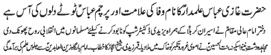 | RAWALPINDI, November 25: The name of Hazrat Abbas Alamdar (PBUH) is the symbol of loyalty and hope for the destitute | |||