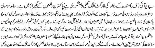 RAWALPINDI, November 3: TNFJ condemned bomb blast at Wagga Boarder; it is conspiracy of the enemy of Pakistan - Hamid Moosavi |