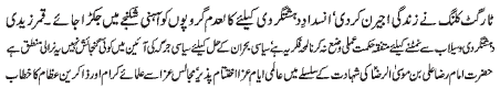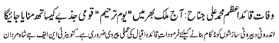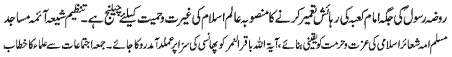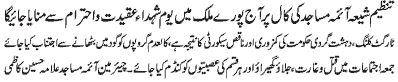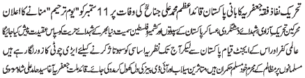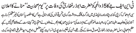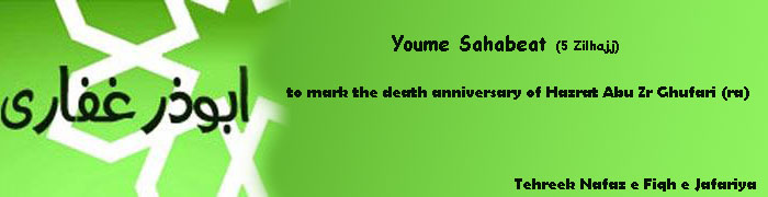 | ISLAMABAD, September 28: TNFJ announced the Observation of the Youm e Sahabiat to mark the death of Abuzr Ghafari on 5 Zilhajj | |||