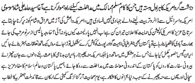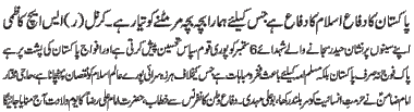 ISLAMABAD, September 7: The defence of Pakistan is the defence of Islam for which everyone is ready to sacrifice - S H Kazmi |
