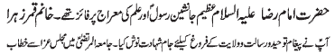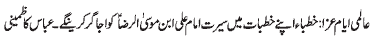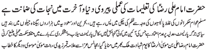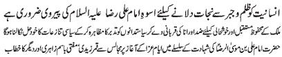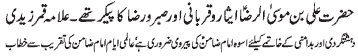 ISLAMABAD, September 20: The following of the pious teachings of Imam Ali Al Raza (PBUH) guarantees salvation |