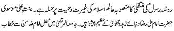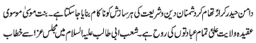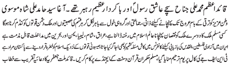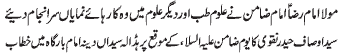 ISLAMABAD, September 12: The Quaid-i- Azam Muhammad Ali Jinnah was the true lover of the Rasool (SAAW) and was imbibed with the Wila of Muhammad (SAAW) and Aal-e-Muhammad (A.S.) |